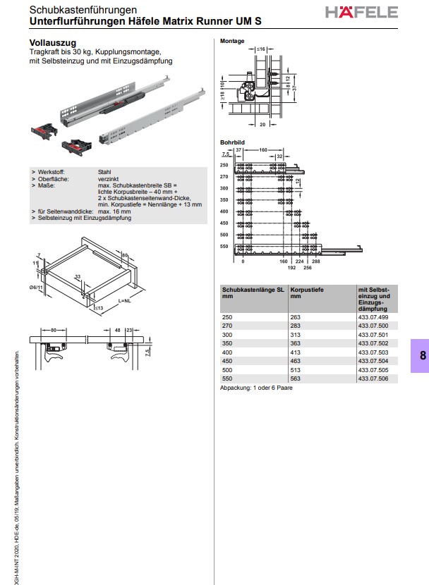 Объем поставки: 1 пара выдвижных направляющих и 2 фиксатора - правый и левый.