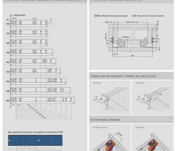 Направляющие скрыт. монт. DTC S10D/500 25кг 2D, полного выдв. с дов. (S10D500HX) 0016658