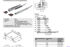 Направляющие скрытого монтажа, Полного выдв. 250мм с доводчиком 433.07.499
