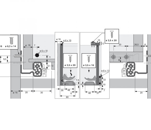 Направляющие полного выдвижения Quadro V6 с механизмом Push to open,, 450 mm, Правый