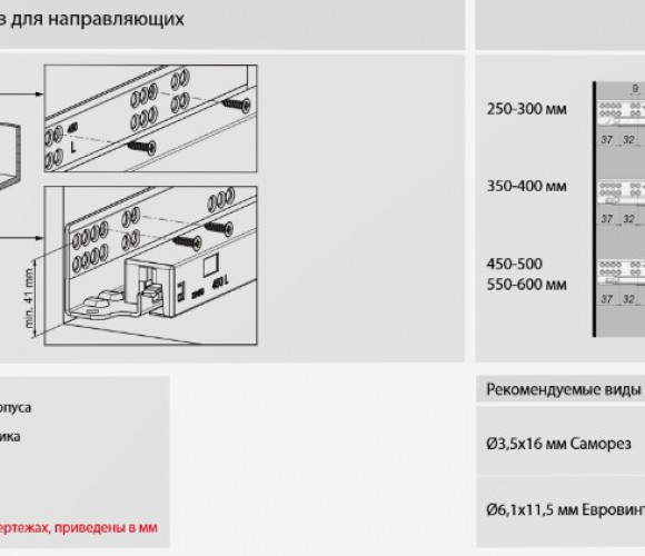 Скрытые направляющие полного выдвижения для деревянных ящиков