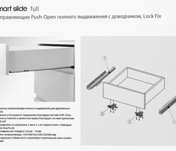 САМЕТ Напр. SMART SLIDE PUSH OPEN полного выдв. c довод., 450 мм, 127.230.305
