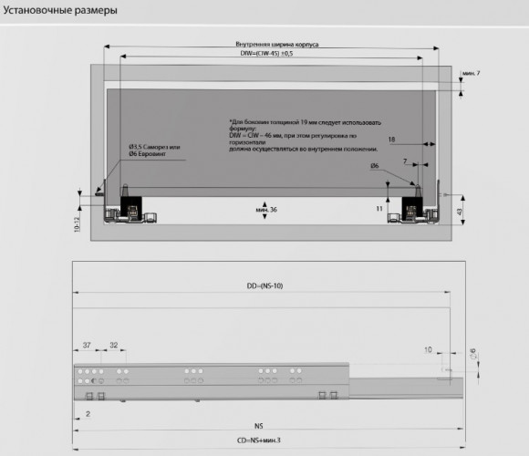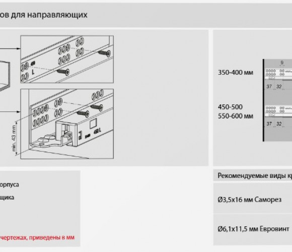 Динамическая нагрузка: 40 кгВозможность установки ящика с толщиной боковин до 19 мм