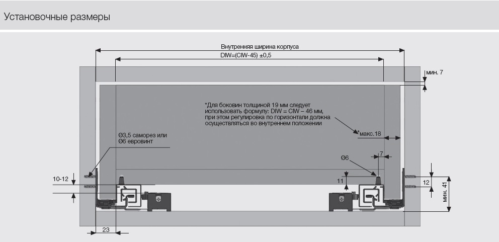 Динамическая нагрузка: 40 кгВозможность установки ящика с толщиной боковин до 19 мм