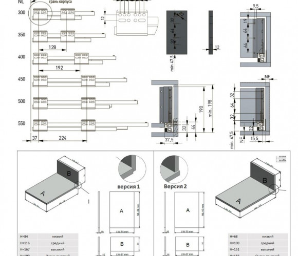 AXIS PRO L-500 мм, высокий H-168 мм, белый - система выдвижения нового поколения с повышенной эргономикой, для использования в кухонных гарнитурах и мебели для ванных комнат.