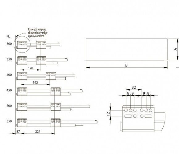 Максимальная вместимость ящика, достигнутая посредством нижнего монтажа направляющих и минимальной толщины боковых панелей.
