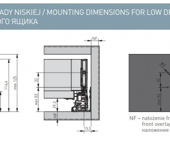 Дополнительная регулировка наклона фасада: +/- 2 мм.