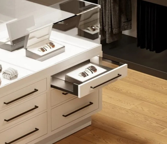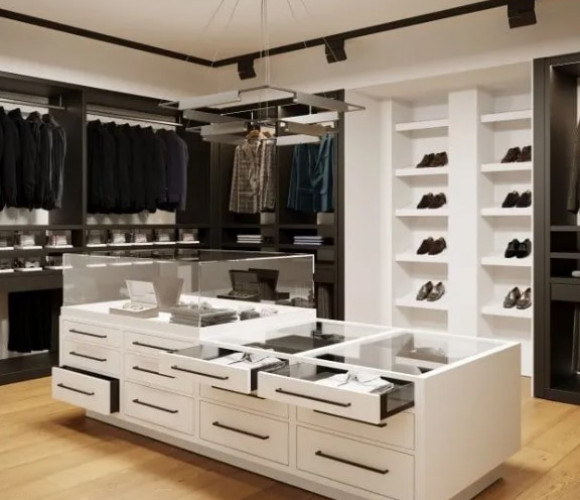 В первую очередь данная система предназначена для гардеробных, но также может использоваться в ванных комнатах и в кухонных помещениях.