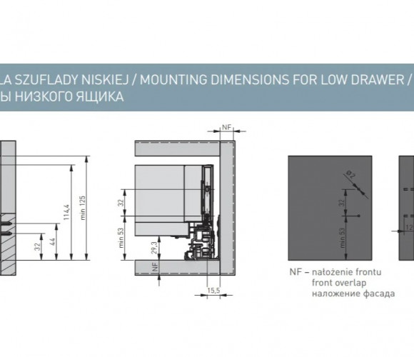 • Дополнительная регулировка наклона фасада: +/- 2 мм.