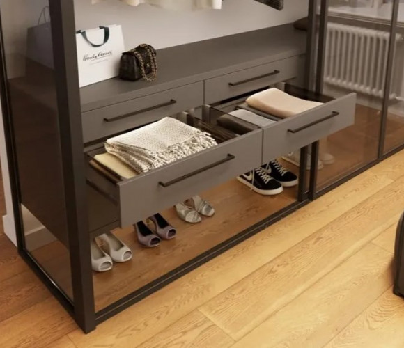 В первую очередь данная система предназначена для гардеробных, но также может использоваться в ванных комнатах и в кухонных помещениях.