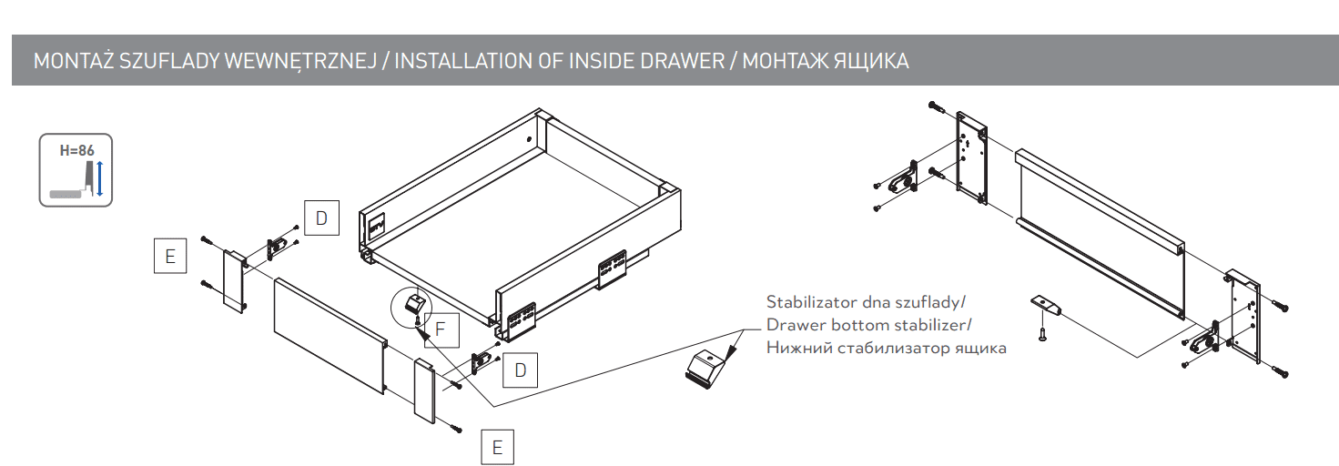 • Для сборки внутреннего ящика необходимо отдельно приобрести комплект для стандартного ящика AXIS PRO.