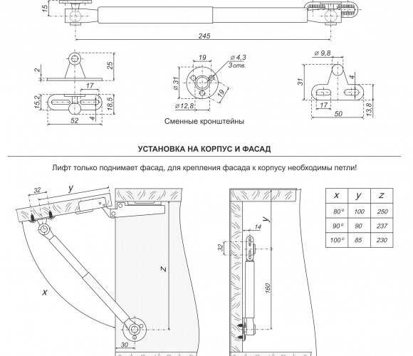 Особенности: Фиксация фасада при открытии в каждой точке траектории движения