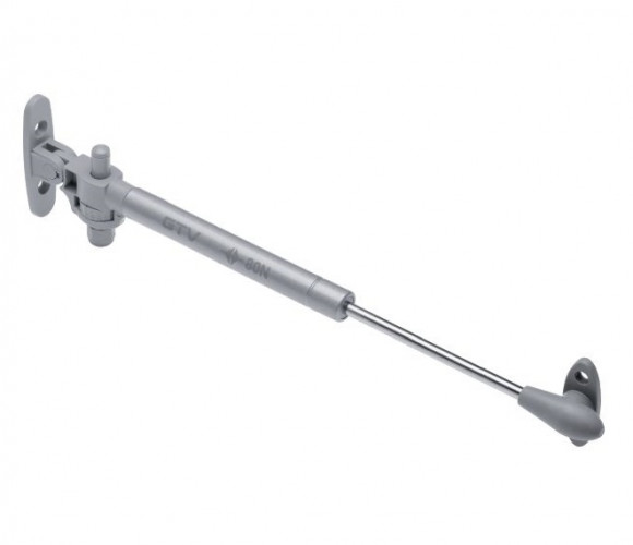 Подъёмник газовый с амортизатором 80N GTV, серый - мебельный подъемник, в конструкции которого предусмотрены доводчик и амортизатор. При правильной регулировке газлифта, в момент закрывании фасада исключается удар и сопутствующий ему шум.