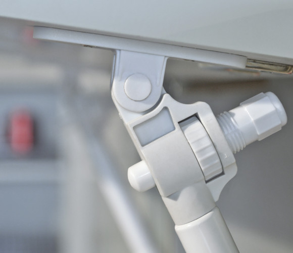Лаконичный моно-дизайн, образуемый защитно-декоративным стальным чехлом, скрывает спицу газлифта. Белый цвет подходит большинству кухонь и хорошо сочетается с боковинами ящиков аналогичного цвета.