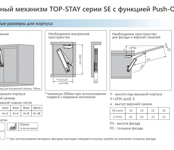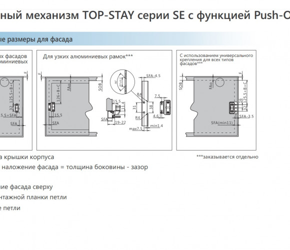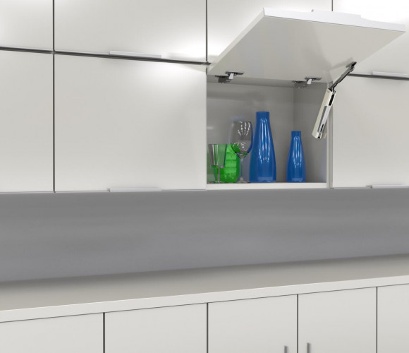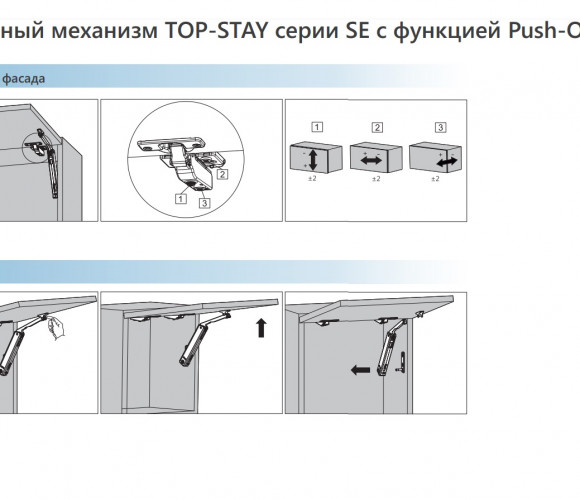 - Открывание от нажатия и функция фиксации фасада в любом положении