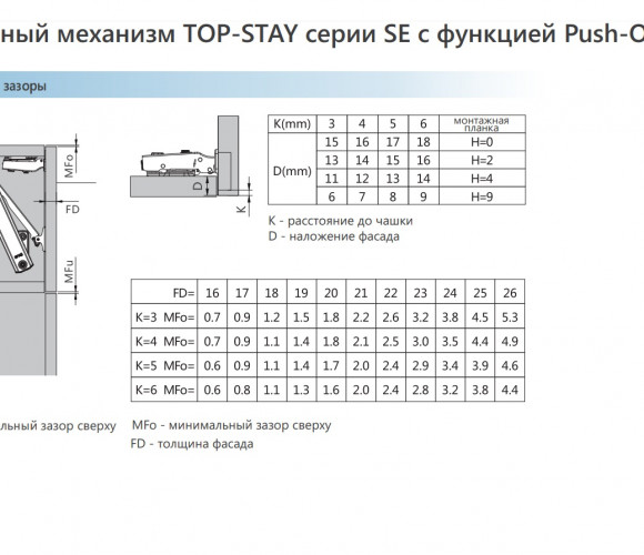 Диапазон индекса мощности LF для механизмов TOP-STAYS SE с функцией Push-Open: