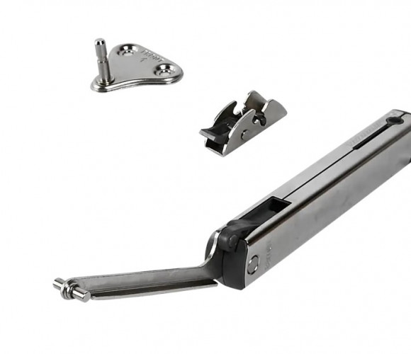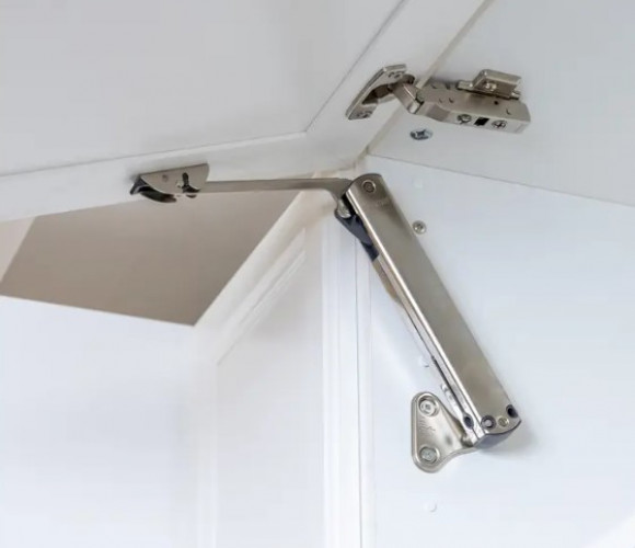 Механизм подъемный Slim Месн — функциональная мебельная фурнитура, используемая для поднятия крышки стола, полки или двери и ее фиксации в открытом положении. Силовой механизм C1 выдерживает весовую нагрузку до 14 кг. Устанавливается на петли с доводчиком, что способствует плавному и тихому закрытию.