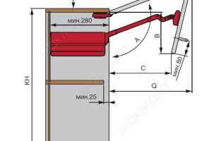 Механизм FREE FOLD F4fo высота фасада/вес 650-730 MM 5,8-12,2 KG ПРАВЫЙ 372.37.441