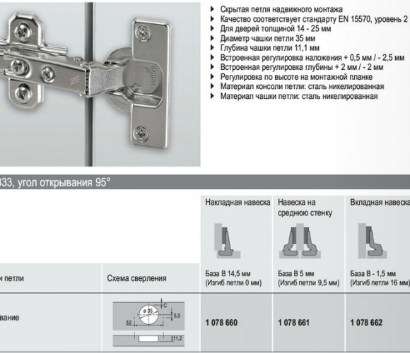 - Скрытая петля надвижного монтажа с функцией самозакрывания
