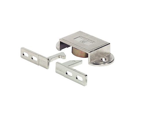 Автоматическая дверная блокировка. Для фиксации двух дверей. Функция дверной блокировки: Блокирует двойные двери при закрывании без дополнительной запорной планки или мебельной задвижки. Материал: цинковый сплав. Поверхность / цвет: никелированная. Монтаж дверной блокировки: Крючковая и клиновая части монтируются соответственно на правой или левой внутренней стороне двери. Сначала должна закрываться дверь с крючковой частью. Тогда при закрывании второй двери клиновая часть автоматически блокирует дверной запор. Дверь со смонтированной клиновой частью должна закрываться замком. Фиксация корпуса, крючковой части и клиновой части, - путём привинчивания шурупами.