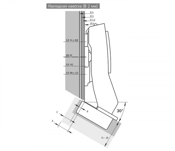 -Скрытая петля с техникой защелкивания со встроенным демпфером с функцией самозакрывания