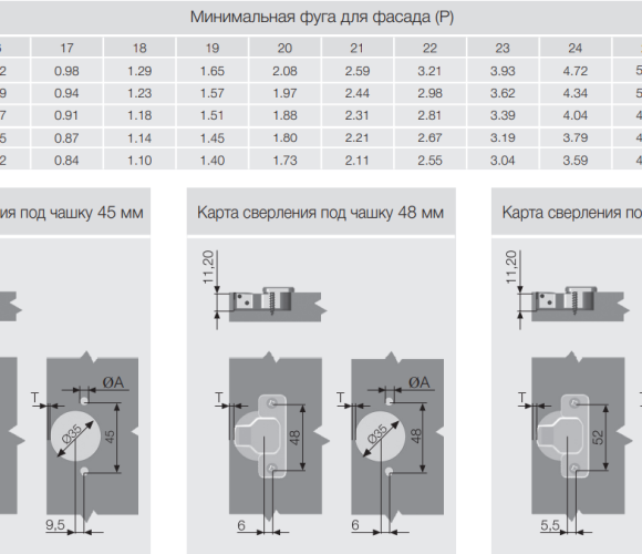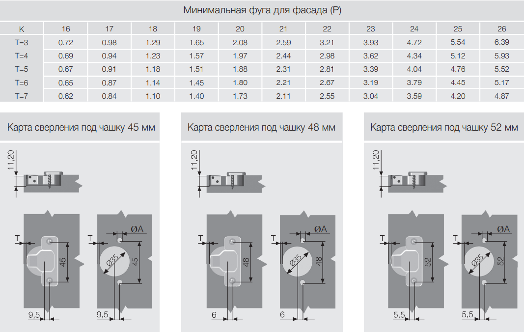 Применяется для открывания мебельных фасадов от 16 до 26 мм. Диапазон наложения дверей от 12 до 20 мм. Угол открывания 110 градусов. Петля SAMET STAR имеет международный сертификат испытаний LGA и рассчитана на 80000 открываний и закрываний. Чашка по глубине 11,2 мм, диаметр составляет 35 мм, межвинтовое расстояние 48 мм, крепится на саморезы.