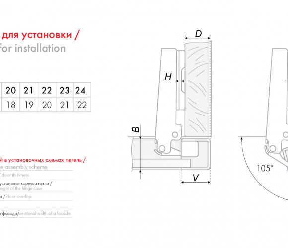 Способ монтажа петли Под евровинт и саморез, с d отверстий 5,5 мм