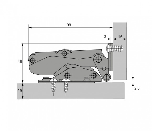 9239784 ПЕТЛЯ KAMAT ДЛЯ КОРПУСОВ ВСТРАИВАЕМЫХ ХОЛОДИЛЬНИКОВ,УГОЛ 115 ГР
