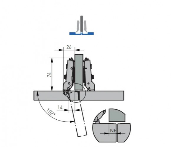 • Система Clip-on обеспечивает быстрый монтаж: корпус петли и ответная планка соединяются и рассоединяются без помощи инструментов, посредством защелкивания.