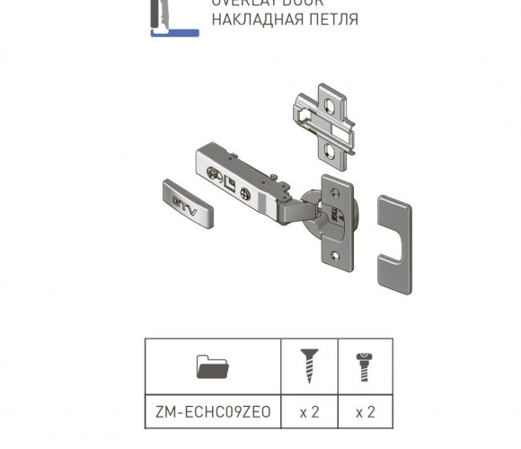Петля GTV НС 09 накладная самозакрывающаяся с H-0 с евро - устройство, посредством которого фасад прикрепляется к корпусу мебельной конструкции и осуществляется открывание/закрывание дверцы.