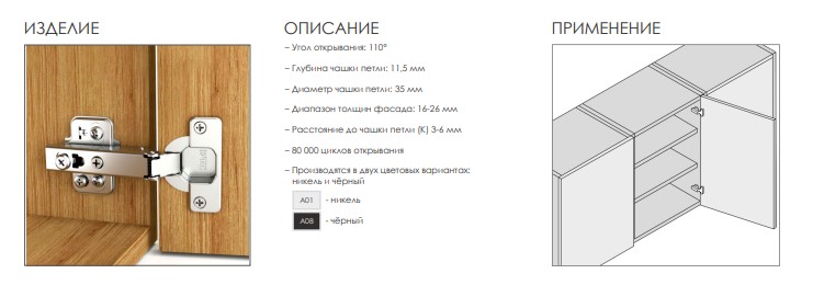 Петля DTC STYLISH 110° вкладная с пружиной черная (C82C675A A08) 0024075
