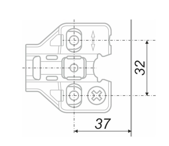 Эксцентриковый винт в корпусе планки отвечает за регулировку положения петли по вертикали в диапазоне +/-2 мм.