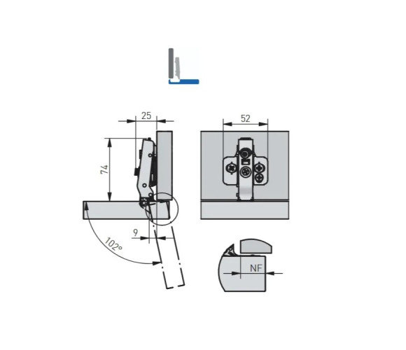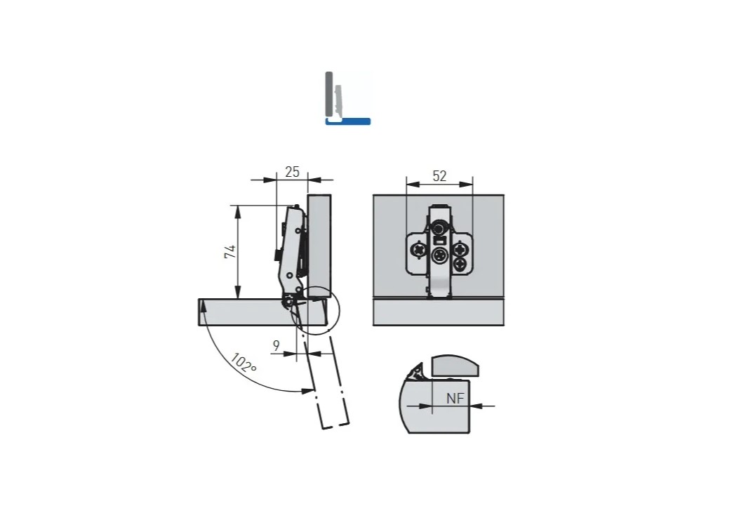 При установке накладных петель; в закрытом положении фасад полностью перекрывает торец боковины шкафа.