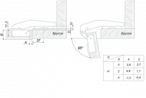 Петля BOYARD меб. с довод. быстр. монт. clip-on D35mm.105гр. откр. смежная H302B02/2410
