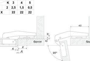 Петля BOYARD slide-on для угла корп. 45гр. D35mm.95гр. откр. H640C02/0314