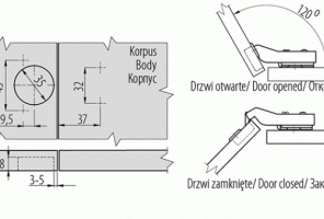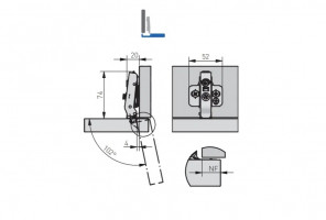 Петля GTV 90 гр. угловая c доводч. для фальшпанелей, H-0, без еврошурупа ZM-HCKT90-3DBEO-S