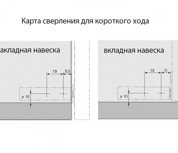 Для накладной, вкладной навески двери и навески на среднюю стенку