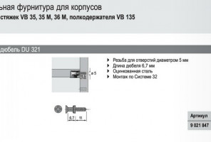 902184701 DU 321, Дюбель ввинчив, D5мм ( для эксцентр. VB 35М/16)