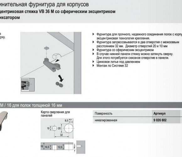9026602 VB 36M/16, эксцентрик 16мм, никель
