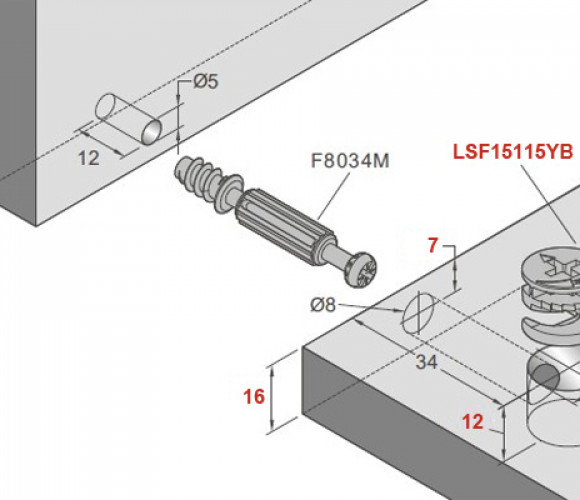 Дюбель для эксцентрика саморезный, i=34мм F8034M