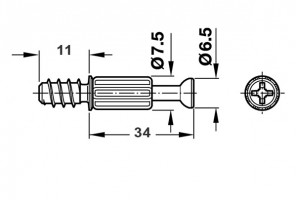 Дюбель для MINIFIX 15 без покрытия 5/11/34 мм (262.28.670/262.28.671)