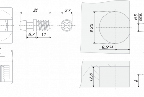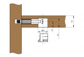 Эксцентрик усиленный пластиковый 16мм + дюбель Дуб