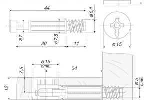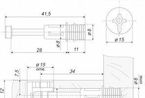 Эксцентриковая стяжка B-FIX 48, 15х10мм + дюбель ST01/48/6/Zn/01 БОЯРД