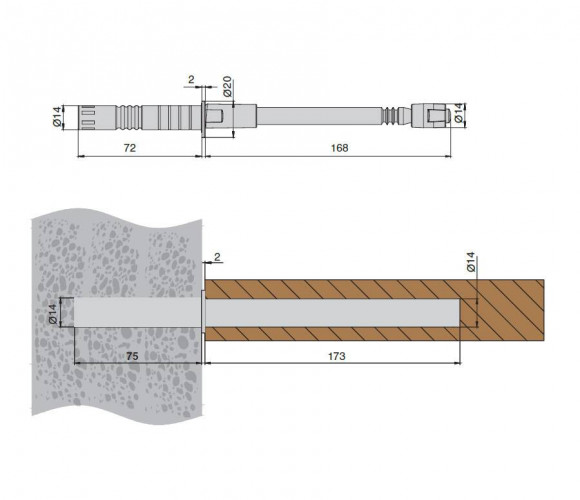 Менсолодержатель скрытый, L=170мм, d=14мм, с регулировкой A.MN101.170.02
