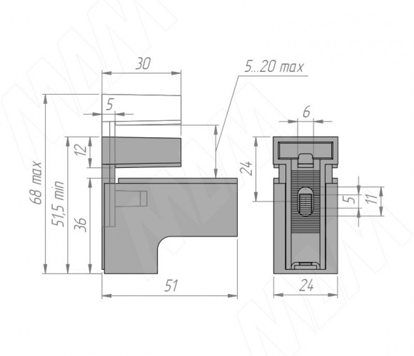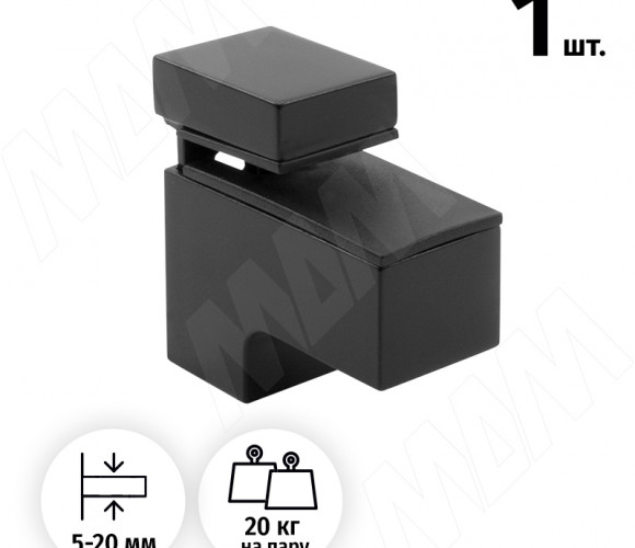 Менсолодержатель КВАДРО МИНИ 24х51мм для дерев. и стекл. полок 5-20мм, черный матовый