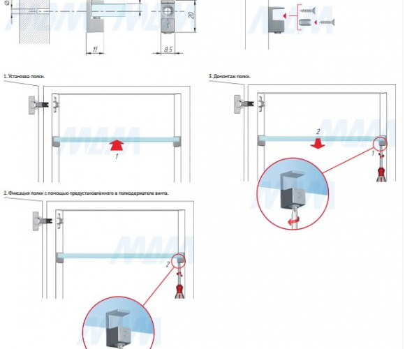 • можно перевозить мебель в собранном виде, не вынимая стеклянные полки.