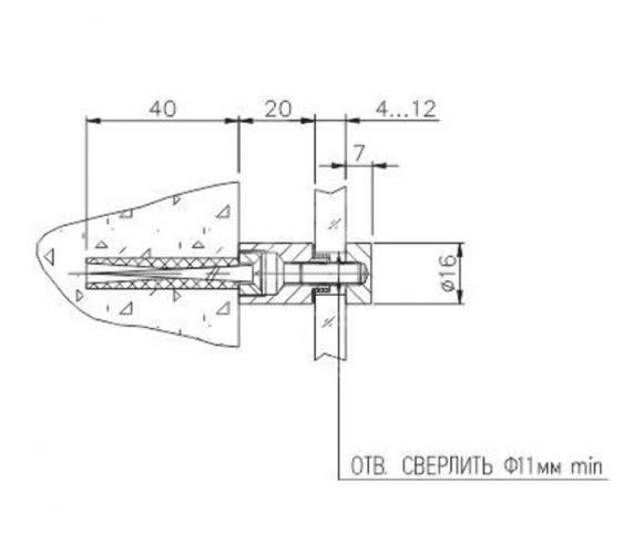 Используется для крепления стекла или зеркал с отрывом от стены.