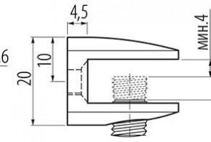 Полкодержатель для стеклянных полок MC-J123-01 Хром (S=max 9 мм)