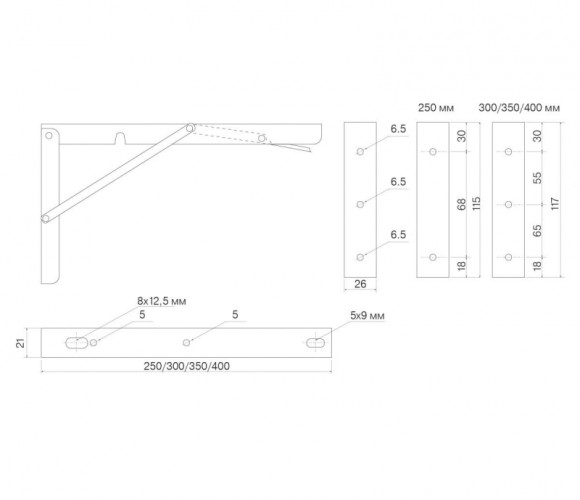 Полкодержатель складной, L=350, сталь, 2 шт., нагр. на пару 150кг. 2 шт.