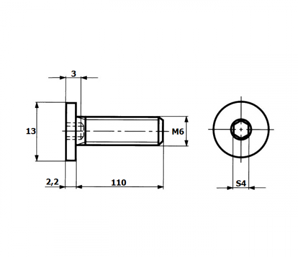 Винт М6х110 с плоской головкой под шестигранник HXS M6x110 FL